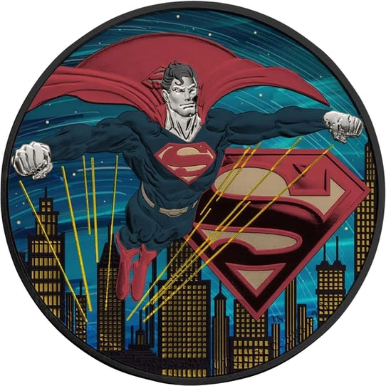 Die Münze wurde mit höchster Präzision geprägt und in Deutschland mit Ruthenium veredelt, einem seltenen Übergangsmetall mit auffallender Dunkelfärbung. Das Motiv der Münze zeigt den ikonischen Superman, coloriert für mehr Detailtiefe und visuellen Impact. Die Kombination aus Ruthenium und Coloration verleiht der Münze ein einzigartiges Aussehen und hebt sie von herkömmlichen Silbermünzen ab.