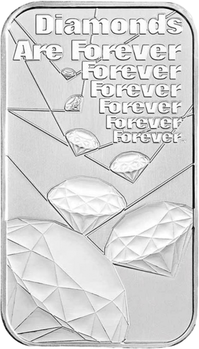 Die Rückseite des Barren ist etwas ganz Besonderes! Sie zeigt den Spruch “Diamonds are forever forever forever forever forever forever” sowie 7 Diamanten.