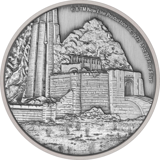 Als Münzmotiv für diese Silbermünze wurde die fiktive Schlucht Helms Klamm ausgewählt, die aus der Herr der Ringe™-Reihe bekannt ist.