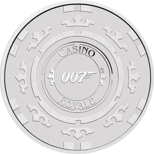 Die Vorderseite der Münze ist dem 100.000-Dollar-Chip aus dem James Bond Film Casino Royale nachempfunden. Sie trägt das unverkennbare Bond 007-Waffenlogo sowie die Aufschrift "CASINO ROYALE". Die Rückseite zeigt ein Porträt von Königin Elizabeth II, ergänzt mit den Jahreszahlen ihrer Regentschaft, sowie den Nennwert, das Gewicht, die Feinheit und das Ausgabejahr.