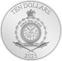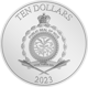 Auf der Rückseite der Münze ist das Staatswappen von Niue abgebildet, das Herkunftsland der Münze. Die Inschriften "TEN DOLLARS" und "2023" unterstreichen den offiziellen Status dieser Münze als gesetzliches Zahlungsmittel in Niue.