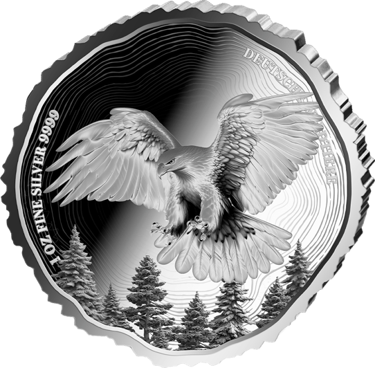 Was diese Silbermünzen so besonders macht? Zunächst einmal die atemberaubende Motivgestaltung. Der Steinadler – Symbol für Kraft, Freiheit und Erhabenheit – wurde in einer dynamischen Pose verewigt. Die konzentrischen Kreise im Hintergrund erzeugen einen faszinierenden optischen Effekt, der die Tiefenwirkung verstärkt. Darunter erheben sich stilisierte Nadelbäume, die dem Motiv eine naturverbundene Atmosphäre verleihen.
