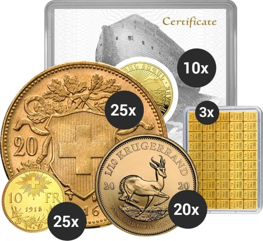 Dieses Paket beinhaltet das Vreneli Gold 10 Franken 25mal.