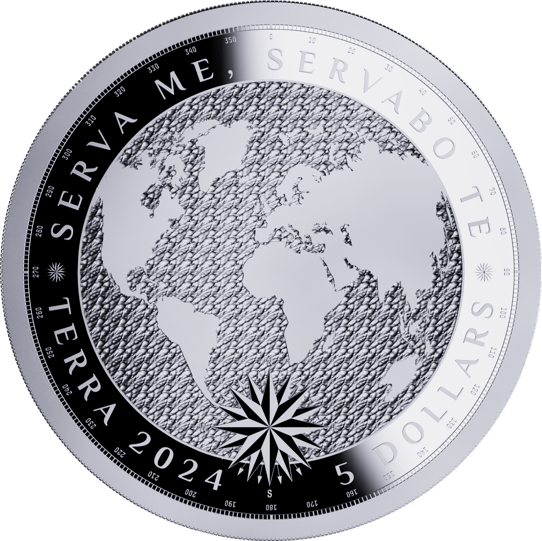 Das Design der Münze ist ebenso durchdacht wie ihre Botschaft. "SERVA ME, SERVABO TE" - "Schütze mich, ich werde dich schützen" - verkündet der Rand der Münze, ein Aufruf zum Schutz unserer Erde. Die Vorderseite zeigt einen sorgfältig eingravierten Globus, der die filigranen Konturen unserer Welt abbildet, umgeben von einem Kompass, der die Navigation und unsere Reise durch die Zeit symbolisiert. Die Rückseite ehrt König Charles III., dessen Portrait von Daniel Thorne entworfen wurde, und ziert den Namen des Inselstaates Tokelau.