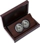 Zwei meisterhaft geprägte 1-Unzen-Silbermünzen im edlen Holzetui der renommierten Rand Refinery
