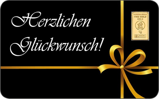 Egal, ob es sich um einen Geburtstag, eine Hochzeit oder ein anderweitiges wichtiges Ereignis handelt, mit diesem Goldbarren können Sie perfekt Ihre Glückwünsche ausdrücken. Zu diesem Goldbarren gehört nämlich noch eine FineCard mit der Aufschrift Herzlichen Glückwunsch! Die Karte ist klassisch schwarz und mit einer edlen goldenen Schleife verziert. Die Aufschrift selbst ist weiß.