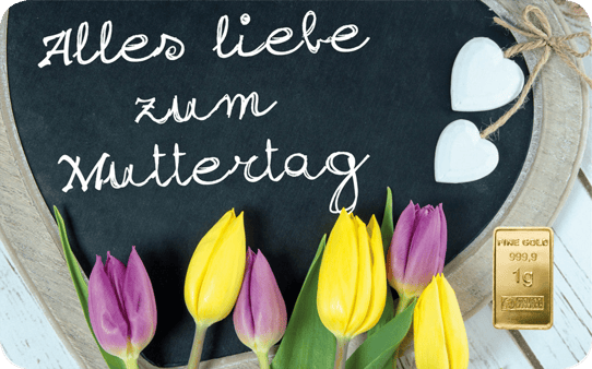Diese FineCard ist im Format einer Kreditkarte gestaltet und bietet eine charmante Präsentation des darin implantierten Goldbarrens aus 999,9 Feingold. Die Vorderseite der Karte ziert ein herzliches Motiv mit Tulpen vor einer herzförmigen Tafel, die den Schriftzug "Alles Liebe zum Muttertag" trägt. Mit den Maßen von 85,6 mm Länge und 54 mm Breite passt diese FineCard in jedes Portemonnaie und wird somit zu einem ständigen Begleiter, der die Erinnerung an einen besonderen Tag lebendig hält.