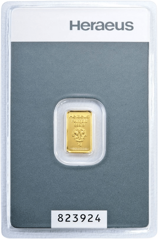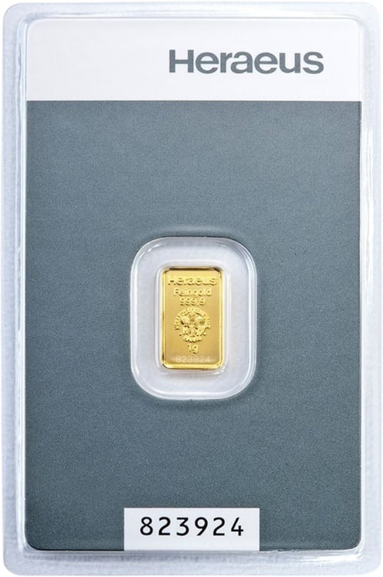 Reinheit & Qualität: Heraeus Goldbarren mit 999,9 Feingold, inklusive eingeschweißtem Sicherheitszertifikat