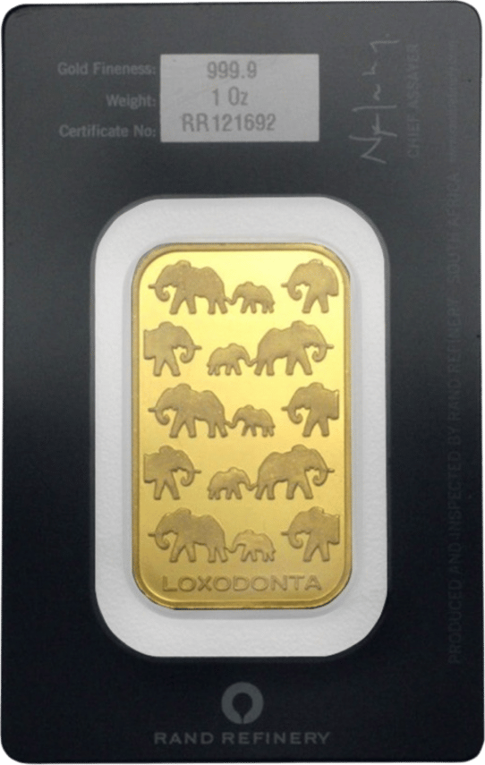 1 Unze Elefanten Goldbarren (Rand Refinery)