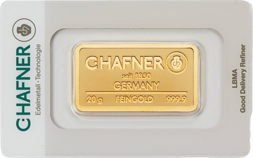 Goldbarren sind in Krisenzeiten ein willkommenes und gern gesehenes Tauschmittel. Kein anderes Investitionsgut weist über Jahrhunderte hinweg eine solch hohe Nachfrage und Wertsteigerung in schlechten Zeiten auf. Um von diesem Zusammenhang zu profitieren, sind Investitionen in guten Zeiten empfohlen. Besonders vorteilhaft erweisen sich hierbei die Kleinstbarren. Hier stellen wir Ihnen den 20g Goldbarren von C. Hafner vor. Der Goldbarren weist eindeutige und leicht prüfbare Sicherheitsmerkmale auf. Unter anderem ist das bei Anlegern und Käufern beliebte Investitionsprodukt nach LBMA zertifiziert. Weiterhin weisen die Barren das „Prädikat“ Made in Germany auf.