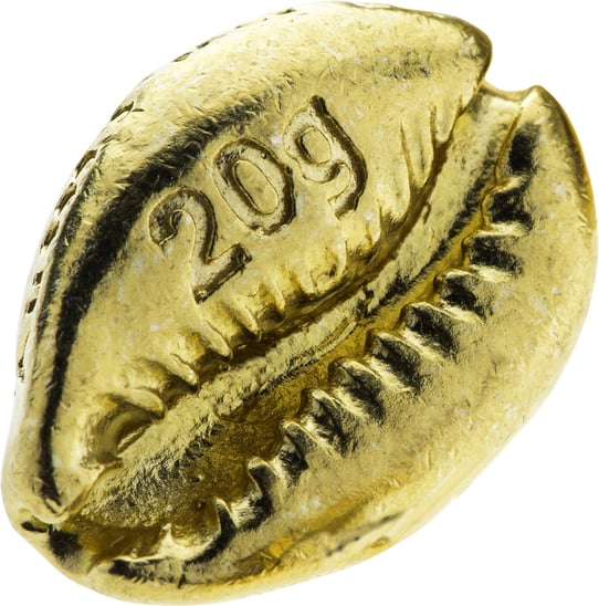 Antikes Zahlungsmittel neu interpretiert: Dieser 20g Goldbarren ehrt die historische Bedeutung von Cowrie Muscheln als Tauschmittel