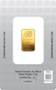 Dieser 2,5 Gramm schwere Goldbarren besticht durch seine Reinheit von 999,9/1000 und wird in einer manipulationssicheren Blisterverpackung geliefert. Die innovative Verpackung verfügt über mehrere Sicherheitselemente:
