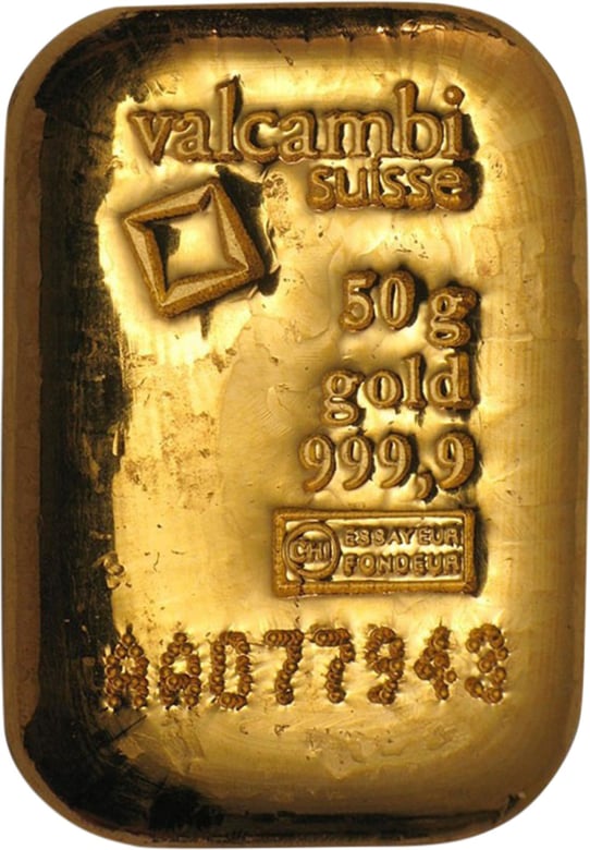 Schweizer Präzision: 50g Feingold mit 999,9 Reinheit, von Valcambi geprägt, inklusive Zertifikat