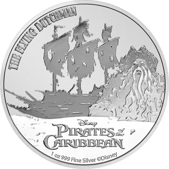 Doch eines Tages, als er zum vereinbarten Treffpunkt erschien, war Calypso nirgendwo zu sehen. Tief zerstört von dem Ereignis riss sich Captain Davy Jones sein Herz heraus und hörte auf, seiner von Calypso auferlegten Aufgabe nachzukommen. Das machte die Meeresgöttin so wütend, dass sie ihn und seine Crew verfluchte. Sie begannen nun, sich in Meerestiere zu verwandeln. Deshalb sieht Captain Davy Jones nun aus wie ein Krake. Er gilt als ein Bösewicht und Feind von Captain Jack Sparrow und William Turner. Die Flying Dutchman, die sie auf der Motivseite sehen, ist sozusagen ein Schiff, wie es bereits von der holländischen Ostindienkompanie gefahren wurde. Das Schiff ist nun ein Geisterschiff und wird nicht mehr von Captain Davy Jones geführt, sondern von William Turner. Unter dem Motiv sind die Stückelung der Münze (1 Unze) und die Feinheit eingeprägt. Diese beträgt 999.