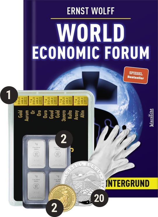 Als besonderes Highlight erhalten Sie zu Ihrem Wertspeicher S zwei wertvolle Zugaben: Ein Paar Baumwollhandschuhe, mit denen Sie Ihre Edelmetalle sorgfältig und professionell handhaben können, sowie das Buch "World Economic Forum" von Ernst Wolff, ein SPIEGEL Bestseller, der Ihnen tiefere Einblicke in die Weltwirtschaft und die Bedeutung von Edelmetallen als Anlageklasse bietet.