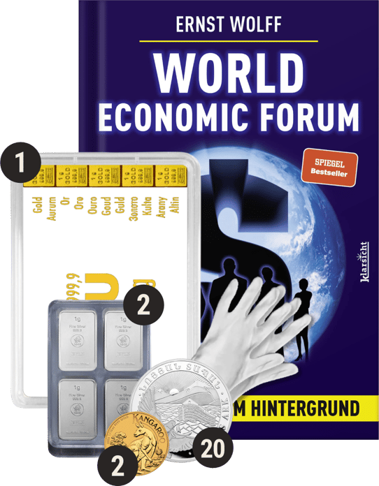 Zusätzlich zu den oben genannten Edelmetallen erhalten Sie auch ein Paar Baumwollhandschuhe und das Buch "World Economic Forum" von Ernst Wolff gratis dazu. Die Baumwollhandschuhe helfen dabei, die Edelmetalle angemessen zu handhaben und deren Zustand zu bewahren. Das Buch von Ernst Wolff bietet tiefe Einblicke in die Weltwirtschaft und ist eine wertvolle Lektüre für jeden, der sich für Wirtschaft und Finanzen interessiert.