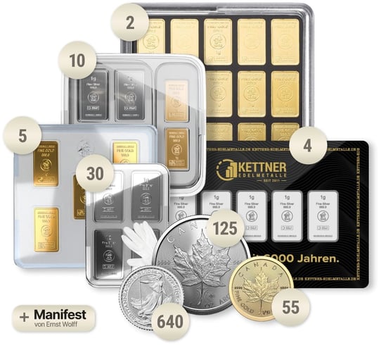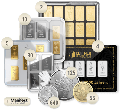 Willkommen bei Kettner Edelmetalle, Ihrem vertrauenswürdigen Partner in Sachen Edelmetall-Investitionen. Mit unserem exklusiven Produkt Einlagensicherung XL bieten wir Ihnen ein einzigartiges Investorenpaket, das sowohl durch Vielfalt als auch durch Qualität besticht. Dieses Paket ist speziell für Anleger konzipiert, die auf der Suche nach einem robusten Schutz vor Inflation und wirtschaftlichen Unsicherheiten sind. Lassen Sie uns gemeinsam die herausragenden Merkmale dieses Pakets entdecken.