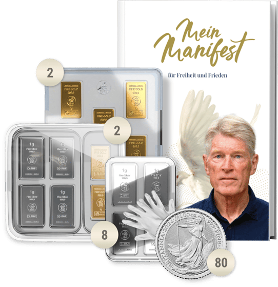 Als besonderes Highlight erhalten Sie zu Ihrem Vermögensschutz Paket M eine Gratiszugabe: Münzhandschuhe und das Manifest von Ernst Wolff. Die Münzhandschuhe ermöglichen Ihnen den schonenden Umgang mit Ihren wertvollen Stücken, während das Manifest von Ernst Wolff Ihnen wertvolle Einblicke in die Welt der Finanzmärkte bietet.