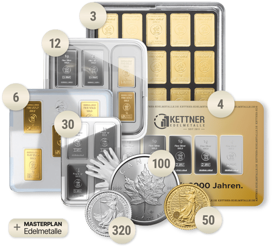 Als zusätzliches Highlight enthält das Enteignungsschutz Paket XL das Buch Masterplan Edelmetalle von Jürgen und Dominik Kettner, 1 Paar Münzhandschuhe und 4 x Kettner Krisenschutzkarte mit RFID Blocker. Diese Zugaben unterstreichen den hohen Wert und die Exklusivität dieses Pakets.