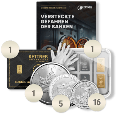 - 1 x Kettner Krisenschutzbox: Die kleinen Stückelungen der Barren sind das ideale Tauschmittel in Krisenzeiten. Hohe Prägequalität "Made in Germany" durch Heimerle und Meule