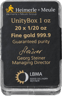 • 1 x 20 x 1/20 Unze Goldbarren Heimerle und Meule Unity Box