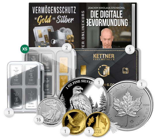 In einer Zeit, in der der digitale Euro vor der Tür steht und finanzielle Unsicherheiten zunehmen, bietet Ihnen das Webinar Paket S eine durchdachte Kombination aus hochwertigen Edelmetallen für optimalen Krisenschutz. Dieses sorgfältig zusammengestellte Paket vereint bewährte Gold- und Silberprodukte in kleinen Stückelungen, die sich perfekt als Tauschmittel und mobile Sicherheit eignen.
