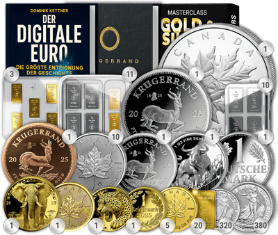 Das Webinar Paket XL ist mehr als Krisenvorsorge – es ist Ihre umfassende Lebensversicherung in physischer Form. Mit über 6,3 Kilogramm hochwertiger Münzen und Barren von den renommiertesten Prägestätten der Welt schaffen Sie ein solides Fundament für Generationen.