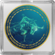 Die Vorderseite dieser Medaille zeigt einen stilvollen, geometrischen Bullen in leuchtenden Grün- und Blautönen, die den Optimismus und Aufschwung symbolisieren. Der Rand und die Schriftzüge sind vergoldet, was der Münze eine zusätzliche Note von Eleganz und Wertigkeit verleiht. Die Rückseite bildet einen perfekten Kontrast mit der Darstellung eines Bären im gleichen geometrischen Stil, der Vorsicht und einen möglichen Marktabschwung repräsentiert. Der glänzende goldene Rand und die kunstvolle Colorierung machen diese Münze zu einem hochwertigen Kunstwerk und einer Rarität, die in keiner Sammlung fehlen sollte.