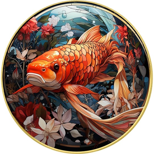 Die Vorderseite der Münze zeigt einen prächtig colorierten roten Koi, der in vielen Kulturen als Glücksbringer und Symbol für Ausdauer und Erfolg gilt. Die Detailgenauigkeit und Farbgebung dieser Darstellung sind ein Meisterwerk der Münzprägung. Umrahmt von einem zarten vergoldeten Rand, wird die Schönheit des Motivs noch betont. Die Rückseite bietet eine Ansicht einer idyllischen Naturlandschaft, die an einen ruhigen Bach erinnert, in dem sich der Koi wie in seinem natürlichen Lebensraum bewegen könnte. Auch hier sind Nennwert und Jahreszahl vergoldet, was der Münze einen zusätzlichen Glanz verleiht.