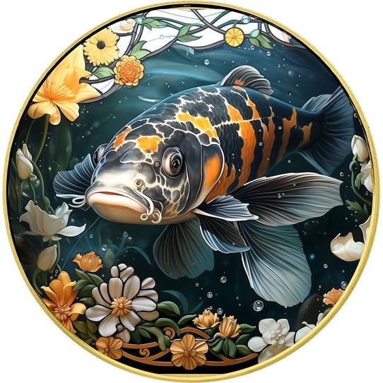 • Motiv: Die Eleganz des schwarzen Koi, eingefangen in feinstem Silber und akzentuiert durch Gold.