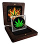 Das Herzstück dieser Münze bildet das exquisit gestaltete Cannabisblatt, das auf der Vorderseite inmitten von Flammen und auf der Rückseite in seiner reinen Form zu sehen ist. Die colorierte und teilvergoldete Veredelung hebt das Motiv eindrucksvoll hervor und verleiht der Münze einen Hauch von Luxus. Der Durchmesser von 40,60 mm und das Feingewicht von 31,10 g aus Silber mit einer Feinheit von 999/1.000 machen sie zu einem beeindruckenden Sammlerstück.