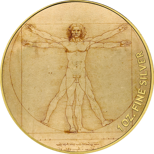 1 Unze Silber Leonardo Da Vinci Vitruvianischer Mensch 2024 (Auflage: 50 | coloriert | vergoldet)