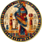 Teilvergoldetes Kunstwerk: Farbenprächtiges Design mit teilvergoldeten Elementen, das die ägyptische Mythologie ehrt
