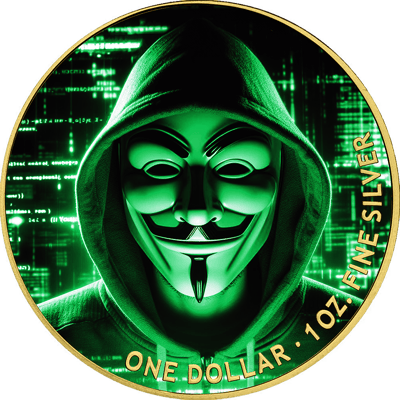 Die Silber-Münze "1 Unze Silber Anonymus Green 2024" ist eine Hommage an die digitale Ära und die Kultur der Freiheit. Mit einem Feingewicht von 31,10 g und einer Feinheit von 999,9/1.000 ist diese Münze nicht nur für Sammler von hochwertigem Silber ein absolutes Highlight, sondern auch eine exklusive Bereicherung für jede anspruchsvolle Sammlung.