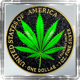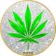 Die Vorderseite dieser exquisiten Münze zeigt ein lebendiges grünes Cannabisblatt, das vor einem dunklen Hintergrund erstrahlt, welcher kunstvoll mit Diamantstaub besetzt ist. Der Kontrast des glitzernden Hintergrunds hebt das detailreiche Blatt hervor und schafft ein Bild voller Tiefe und Dimension. Die Rückseite ist nicht weniger beeindruckend, mit einem weiteren Cannabisblatt, das vor einem hellen Hintergrund glänzt, ebenfalls akzentuiert durch den schillernden Diamantstaub. Die Schriftzüge und der Münzrand sind in einem eleganten Goldton teilvergoldet, was den luxuriösen Charakter dieser Münze unterstreicht.