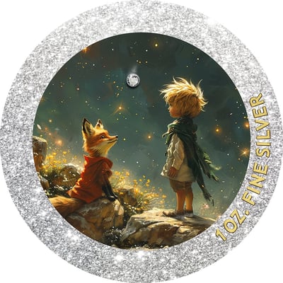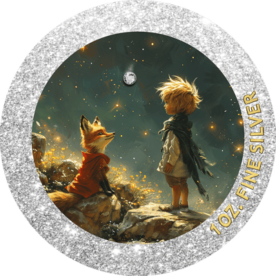 Magisches Sammlerstück: Die zauberhafte Darstellung des Kleinen Prinzen mit dem Fuchs unter dem Sternenhimmel wurde meisterhaft auf 1 Unze Feinsilber geprägt