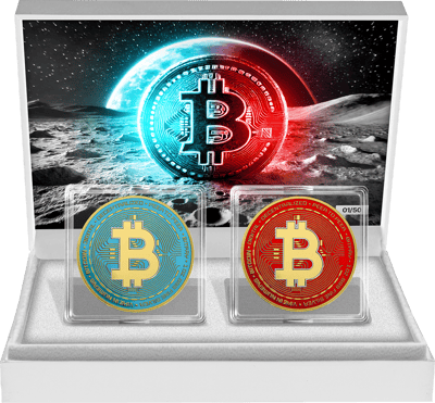 Space Red & Blue Bitcoin Set 2024 – Einzigartige Sammlermünze mit hohem Wertsteigerungspotential
