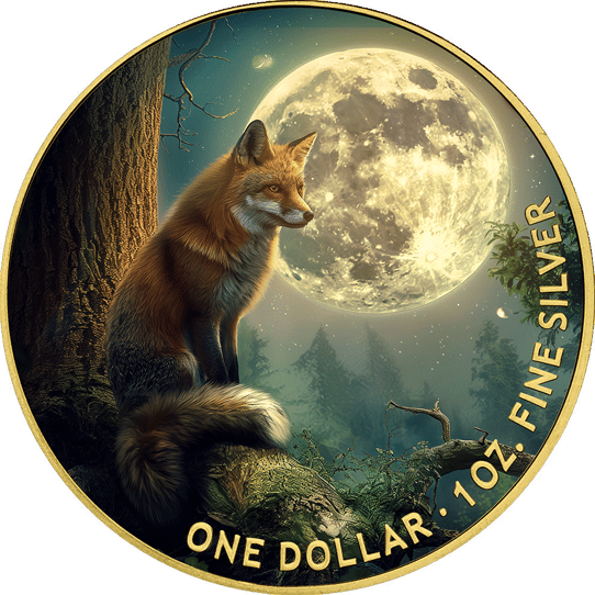 Diese exklusive Münze besticht durch ihr außergewöhnliches Design. Auf der Vorderseite sieht man einen majestätischen Fuchs, der vor einem leuchtenden Vollmond steht. Die Rückseite zeigt einen friedlichen Wald in der Abenddämmerung, eingefangen in atemberaubender Detailtreue. Alle Schriftzüge und der Münzrand sind kunstvoll vergoldet, was der Münze eine besonders edle Note verleiht. Diese hochwertige Veredelung wurde von einer spezialisierten deutschen Firma exklusiv für Kettner Edelmetalle durchgeführt.