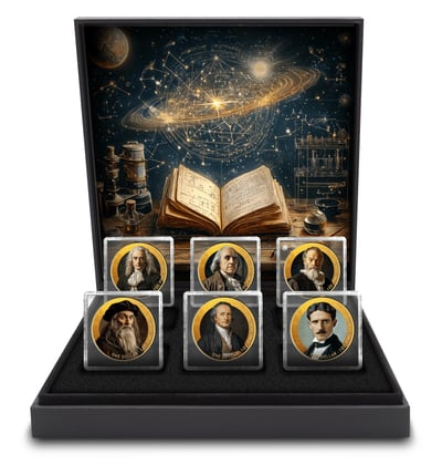 Jede der sechs Münzen dieses exklusiven Sets zeigt ein beeindruckendes Motiv eines der größten Denker der Menschheitsgeschichte: