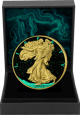 Die aufwändige Veredelung dieser Münze macht sie zu einem wahren Kunstwerk. Das Sternbild des Großen Bärens wurde mit einer speziellen Leuchtbeschichtung versehen, die im Dunkeln ein magisches Türkis-Leuchten erzeugt. Die vergoldete Walking Liberty auf der Rückseite strahlt eine zeitlose Eleganz aus und unterstreicht den hohen Sammlerwert dieser Ausgabe.