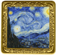 Die Vorderseite zeigt das ikonische Gemälde in seiner ganzen Pracht - von den wirbelnden Sternen am Nachthimmel bis zum verschlafenen Dorf im Tal. Die Rückseite ziert ein ausdrucksstarkes Selbstportrait des Künstlers. Durch die exklusive Colorierung und teilweise Vergoldung entsteht ein faszinierendes Zusammenspiel von Farben und Edelmetallen.