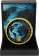 Jedes einzelne Exemplar dieser exklusiven Edition wird in aufwendiger Handarbeit veredelt. Die Kontinente sind mit feinstem schwarzen Diamantstaub besetzt, der der Münze eine besondere Tiefenwirkung verleiht. Der vergoldete Rand bildet einen eleganten Rahmen und unterstreicht die Wertigkeit dieser besonderen Ausgabe.