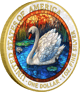 Hochwertige Veredelung: Die aufwendig teilvergoldete und handkolorierte Münze besticht durch ihre detailreiche Perlmutt-Veredelung und das majestätische Schwanen-Motiv