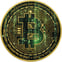 • Motiv: Faszinierendes Bitcoin-Logo vor Matrix-Hintergrund mit Smaragd-Effekt