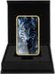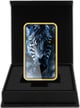 Kunstvolle Teilvergoldung trifft auf 999,9er Feinsilber: Das dramatisch kolorierte Zebra-Motiv mit bernsteinfarbenen Augen macht diesen Barren zu einem einzigartigen Meisterwerk deutscher Prägekunst