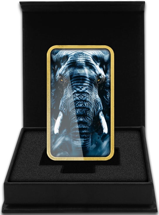 Exklusive African Animals Elefant Edition - Teilvergoldeter Silberbarren in höchster Prägequalität