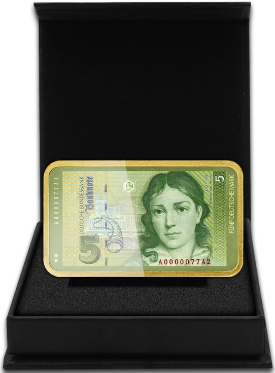 Edle Kombination aus Silber und Gold mit historischem 5 DM Schein Motiv in Proof-like Qualität