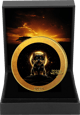 Die Silbermünze wurde mit höchster Präzision veredelt und teilweise vergoldet. Das Motiv zeigt einen niedlichen Hundewelpen vor einem strahlenden Vollmond, umgeben von einem funkelnden Sternenhimmel. Die kunstvolle Kolorierung verleiht der Münze eine besondere Tiefenwirkung und macht sie zu einem echten Blickfang.