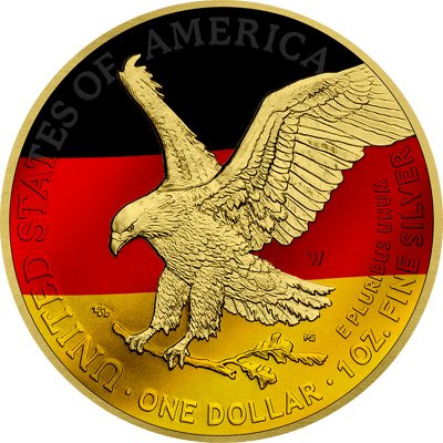 • Einzigartige Kombination aus American Eagle und deutscher Flagge mit hochwertiger Teilvergoldung