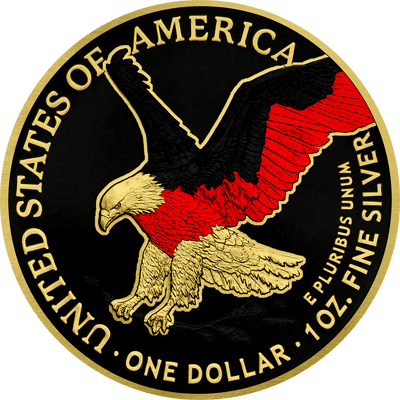 Die aus einer Unze feinstem Silbermünzen gefertigte Münze besticht durch ihre aufwändige Gestaltung. Der majestätische amerikanische Adler, koloriert in den Farben der deutschen Flagge, erhebt sich vor einem tiefschwarzen Hintergrund. Die teilvergoldeten Elemente verleihen der Münze zusätzliche Eleganz und unterstreichen ihre Exklusivität.